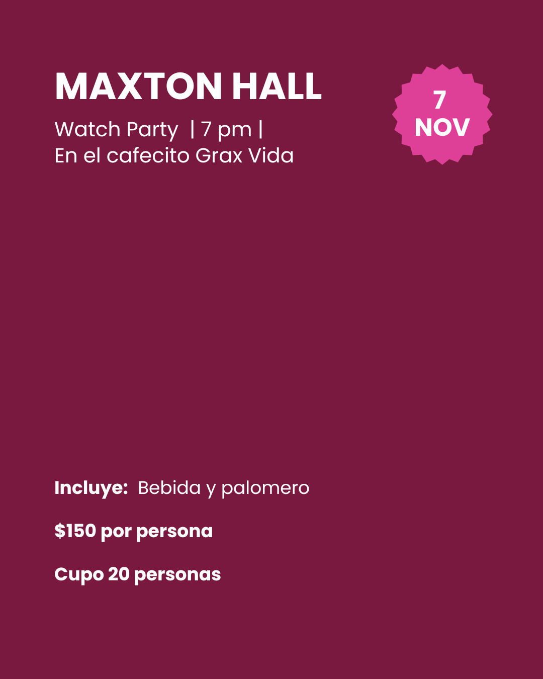 📅 Viernes 7 de Noviembre  | 7:00 pm