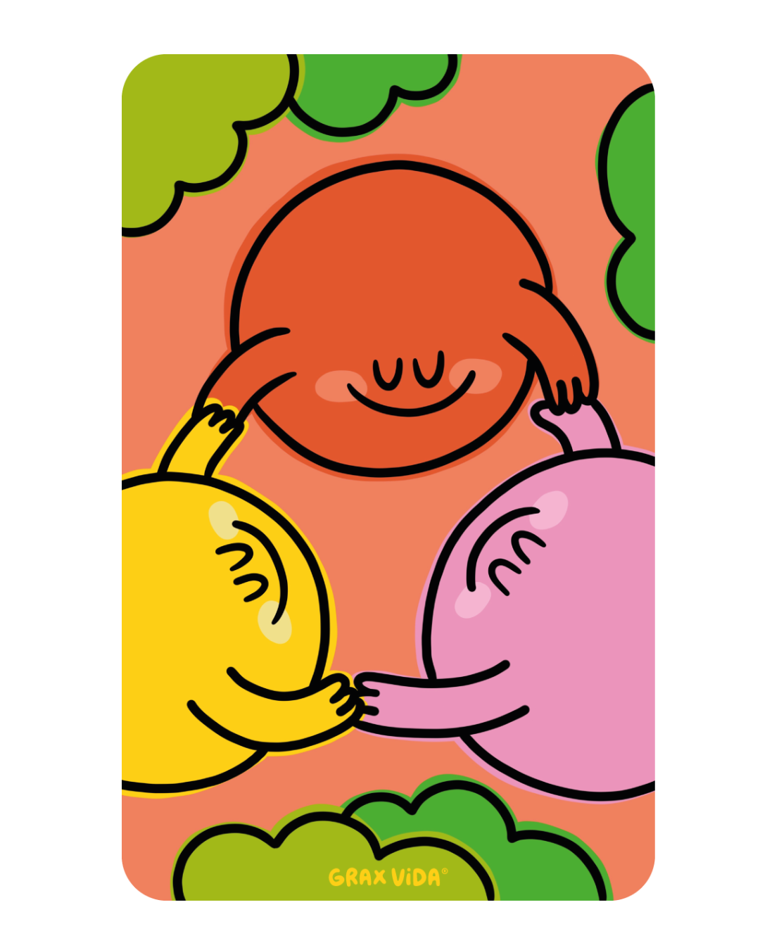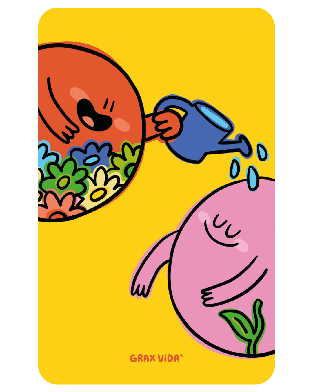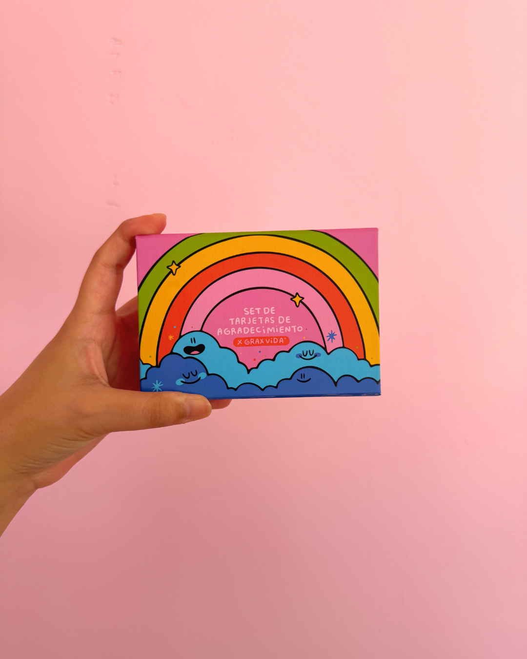 Set de tarjetas de agradecimiento ilustradas por Grax Vida (60 piezas) – Impresión a color doble cara, barniz UV a registro, tarjetas con bordes redondeados y caja de pasta dura con imán