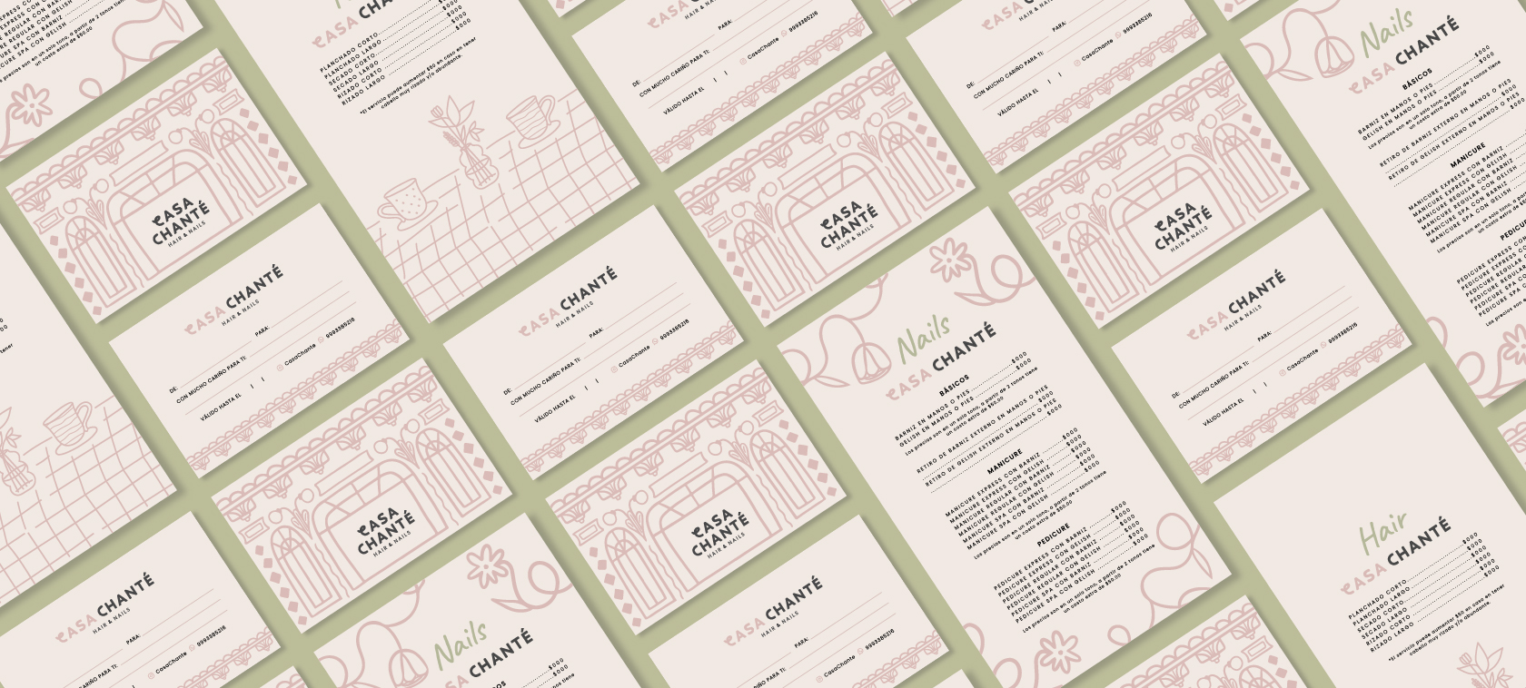 Casa Chanté es un espacio pensado para que las mamás se consientan, mientras sus hijos disfrutan en Petit Chanté, la estética infantil. Un concepto que conecta belleza, cuidado y familia en un mismo lugar. El branding refleja esta unión: tonos suaves y detalles florales para Casa Chanté, y colores vivos con formas divertidas para Petit Chanté, cada una con su propia personalidad pero ligadas por la misma esencia.